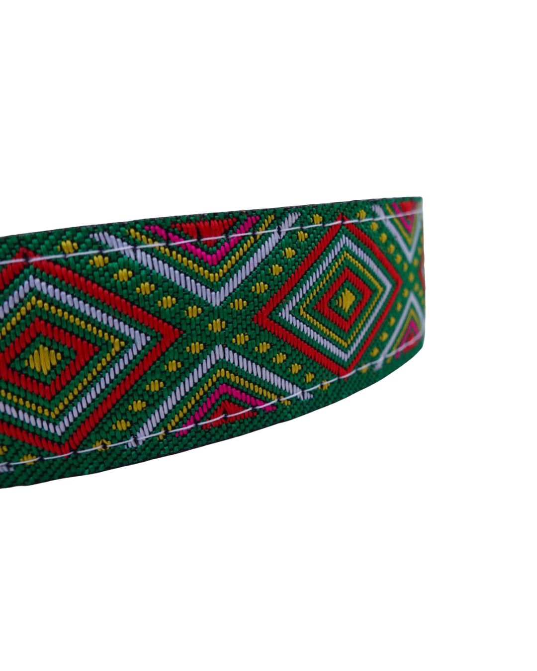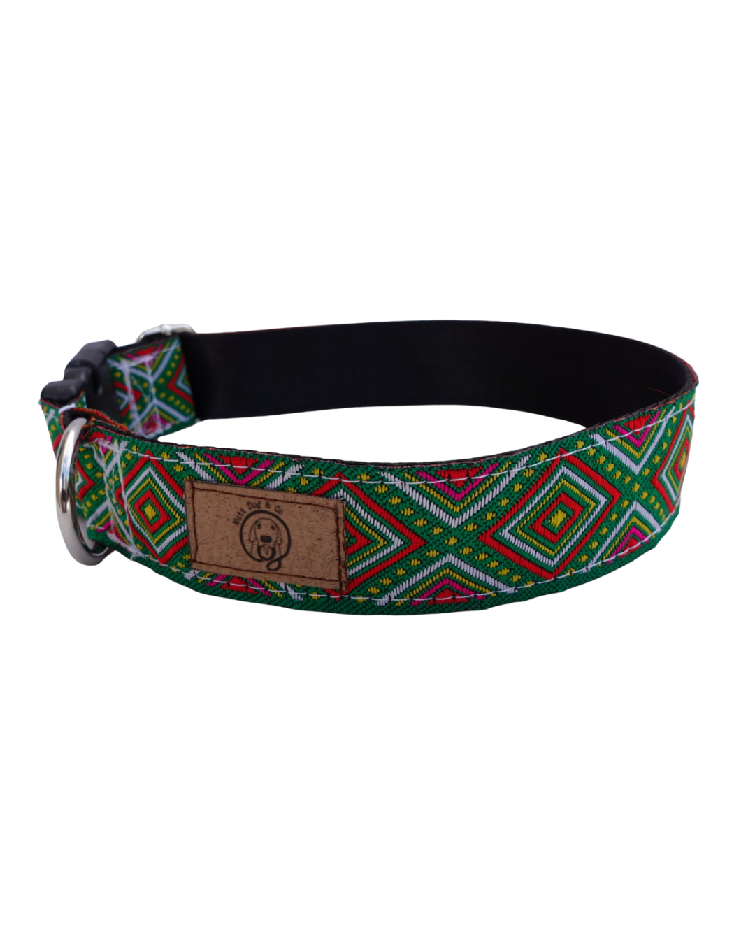 Coleira de cão ajustável feita à mão com padrão étnico.