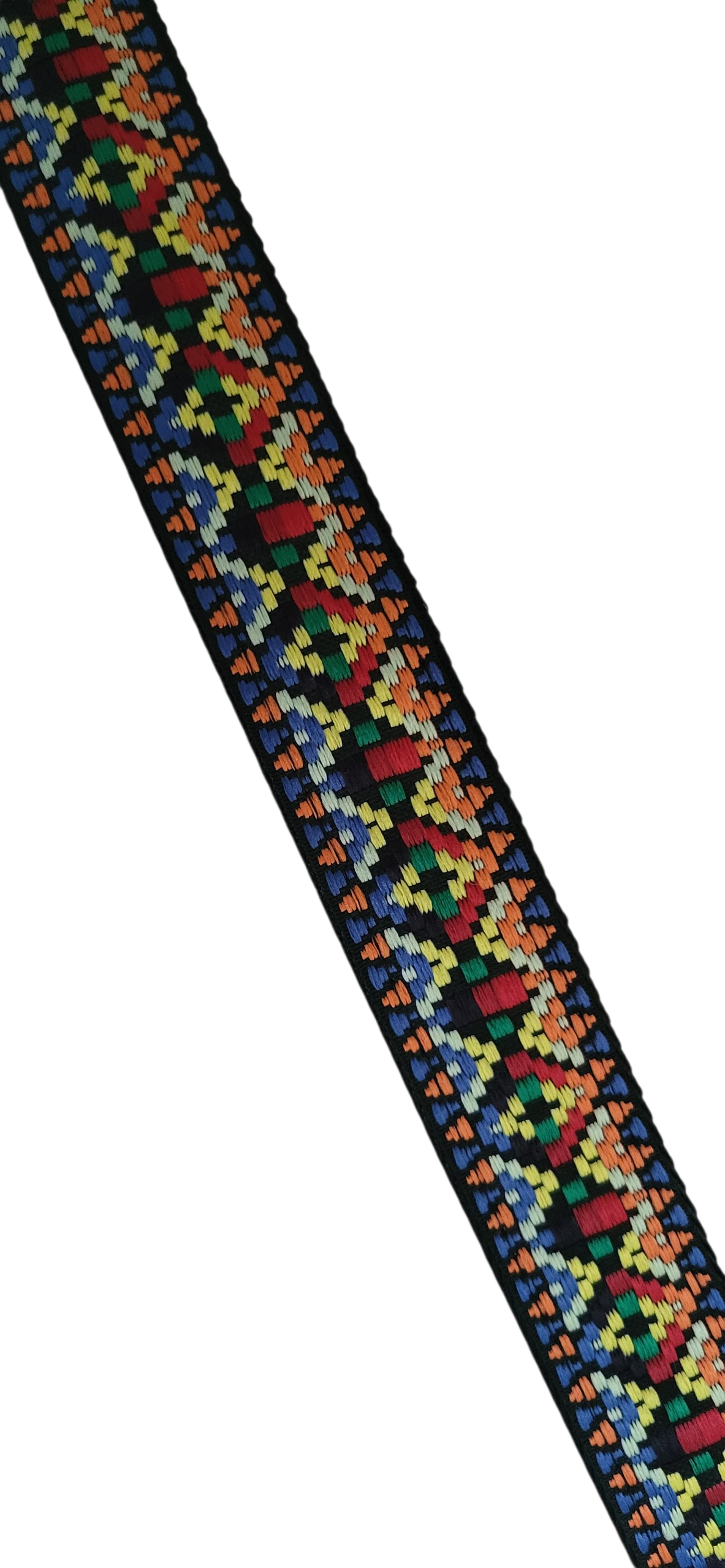 O tamanho da alça é de 1 metro (ajustável), possui padrões étnicos divertidos.