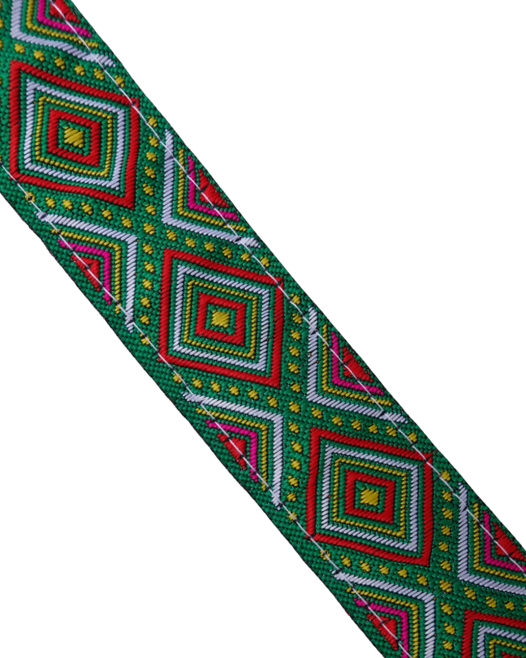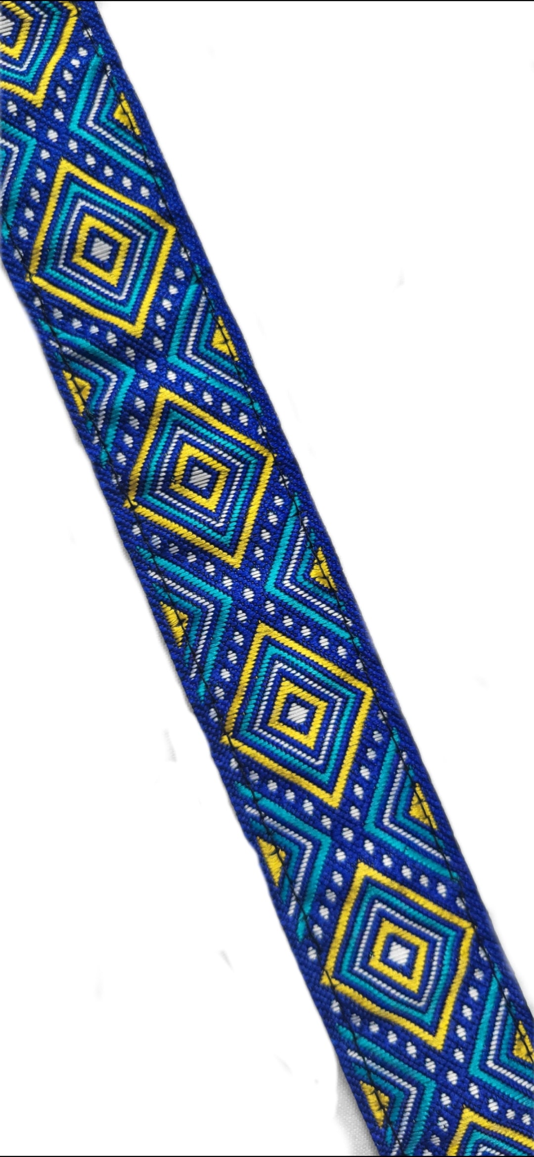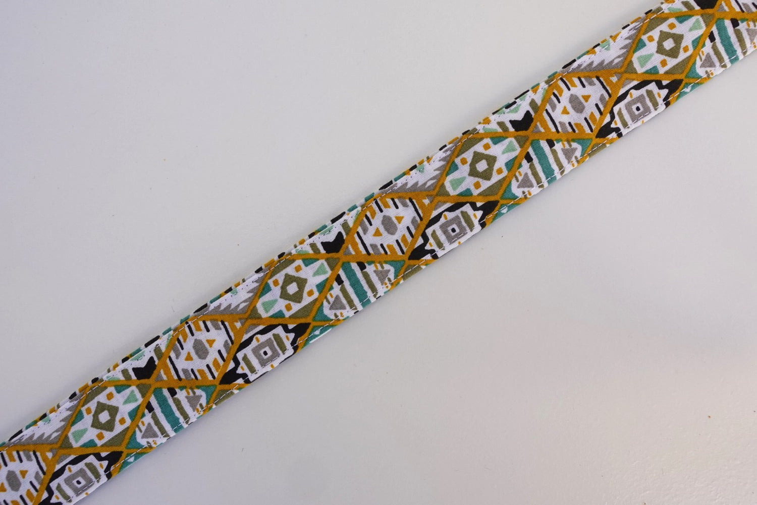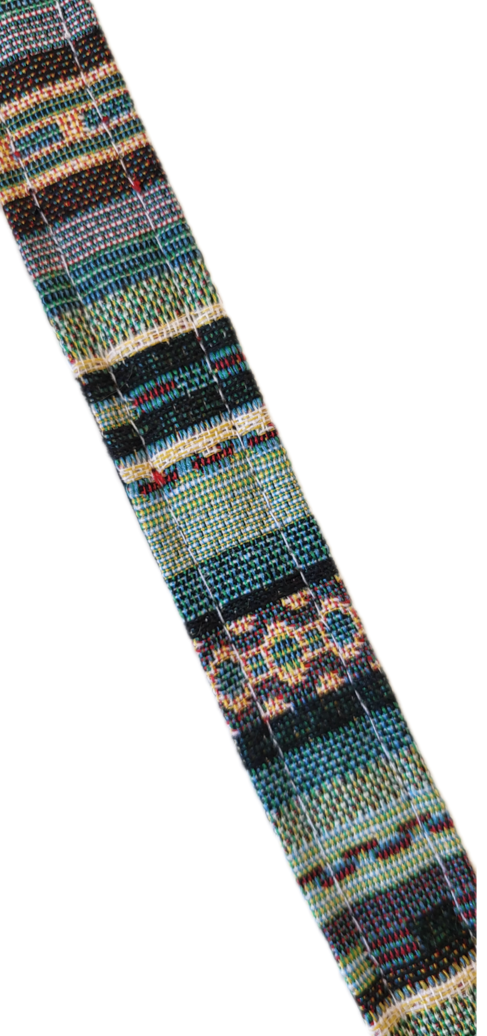 Alça de mala é feita à mão com padrões étnicos e coloridos. Assim como as coleiras dos seus cães.