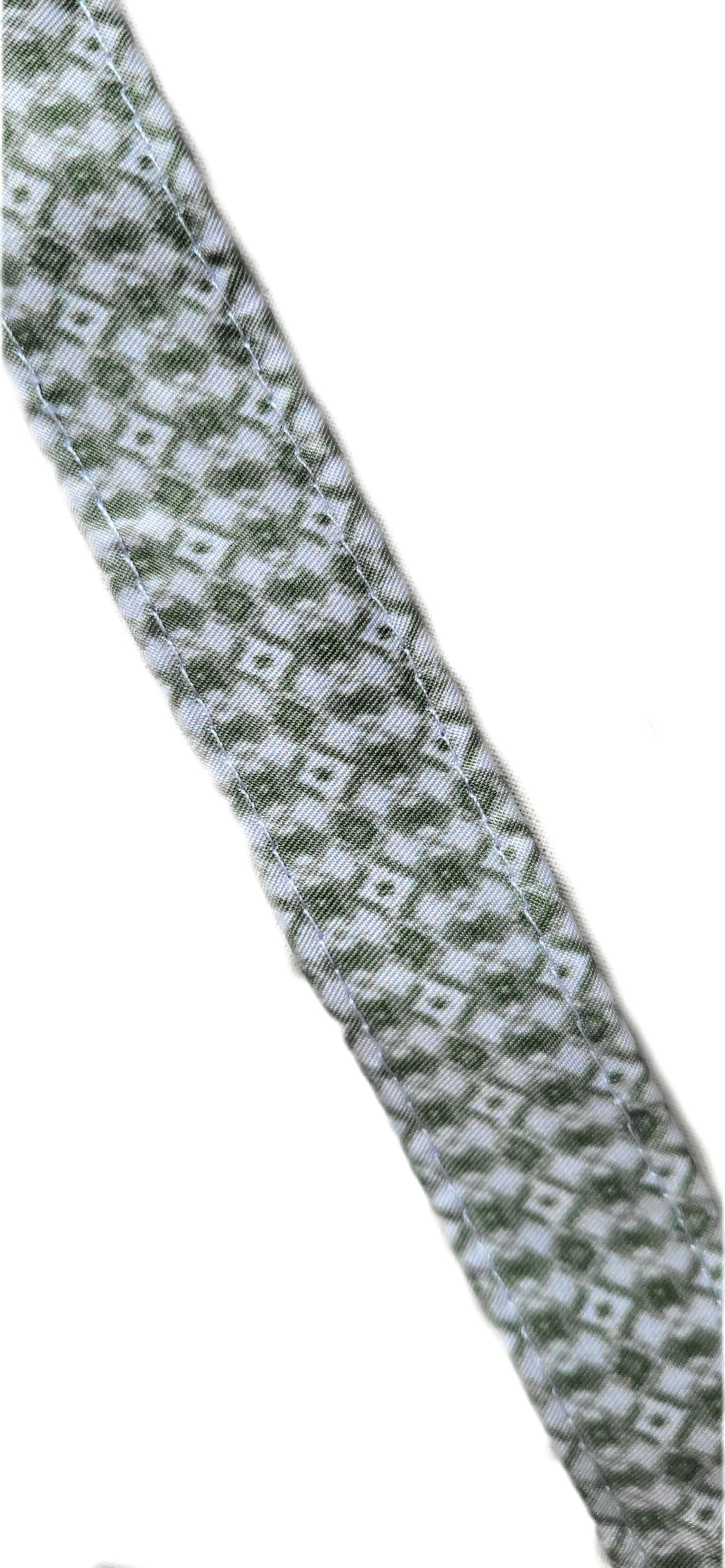 A alça é feita de tecido de algodão ou poliéster costurado em uma fita de gorgorão preta.