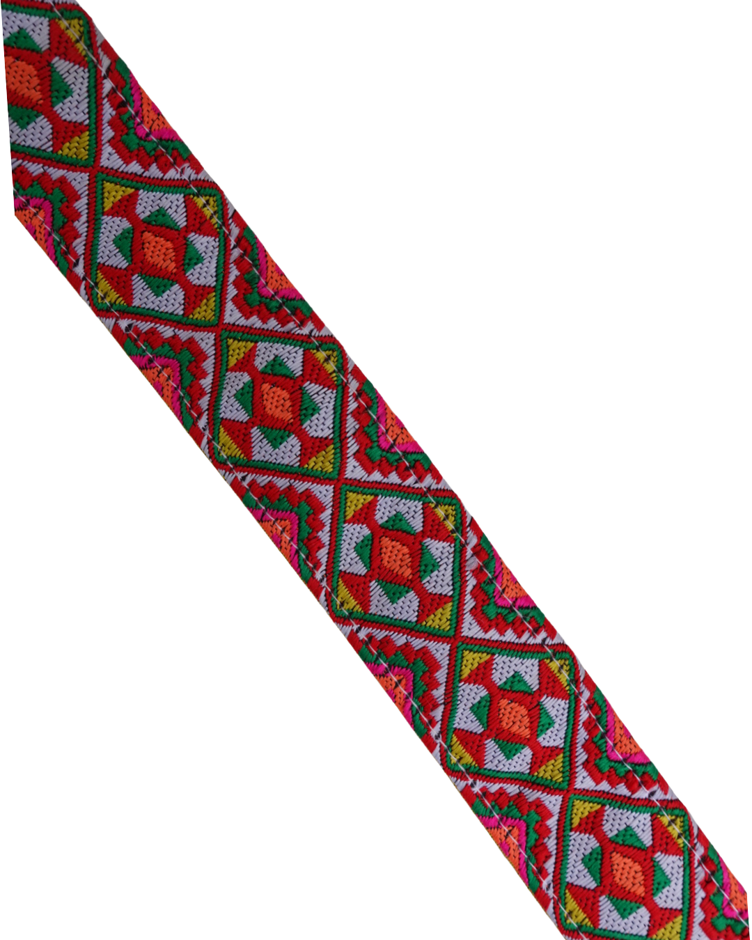 O tamanho da alça é de 1 metro (ajustável), possui padrões étnicos divertidos.