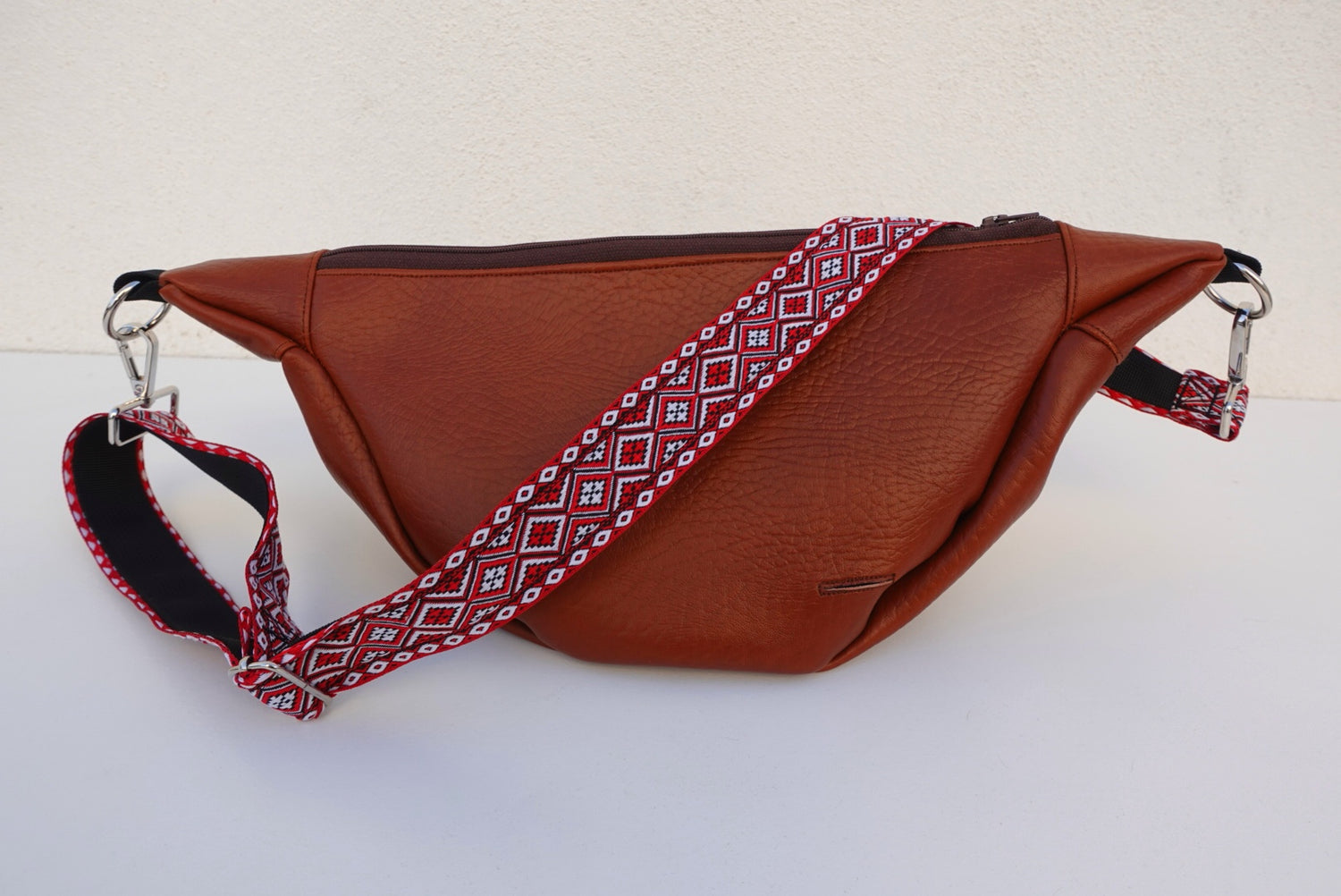 A melhor parte desta mala é que é feita à mão, tem um bolso interior com uma abertura que permite retirar facilmente os sacos.